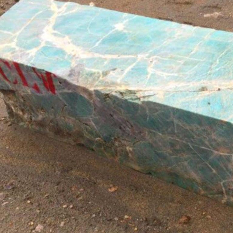 Amazonite can be found in form of a rough rock, or as tumbled, shiny stone.